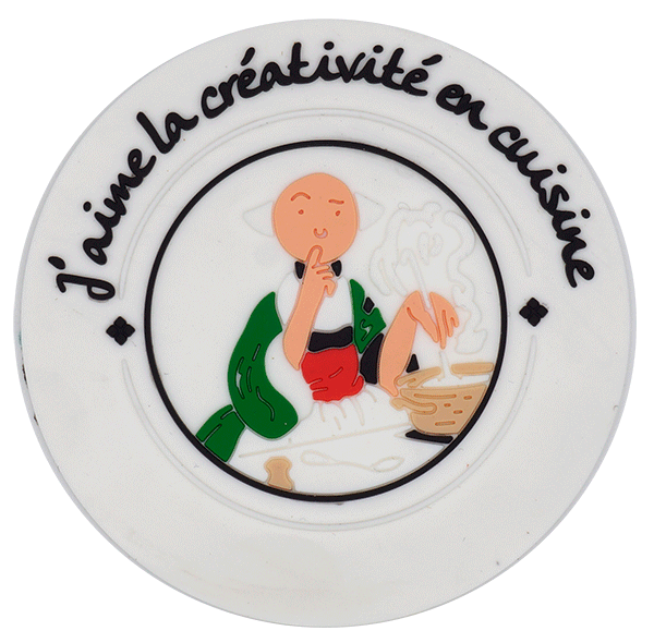 PVC軟膠杯墊,采用環保進口PVC粉和油,顏色調色,開模具.工藝為點膠(微量射出),把不同顏色材料點在模具里面,再經過機器烤溫成型制作而成。